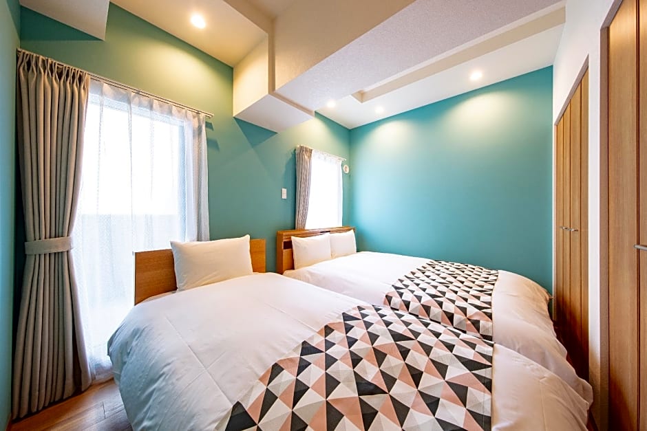 The spacious twin room provides air conditioning, a washing machine, as well as a private bathroom featuring a bath and a shower. Meals can be prepared in the kitchen, which is equipped with a stovetop, a refrigerator, kitchenware and a microwave. This twin room features tatami, a wardrobe, a flat-screen TV and a balcony. The unit offers 2 beds.